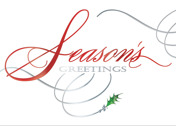 Season's Greetings-2 pass, 3 color-red/silver/lime green on white