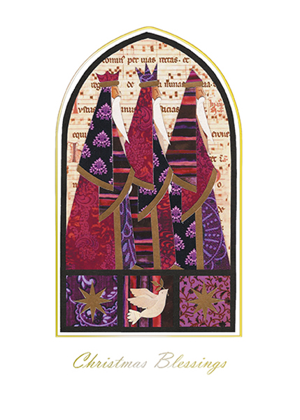 3 kings in arch-cut paper style Christmas Blessings gold foil caption and highlights