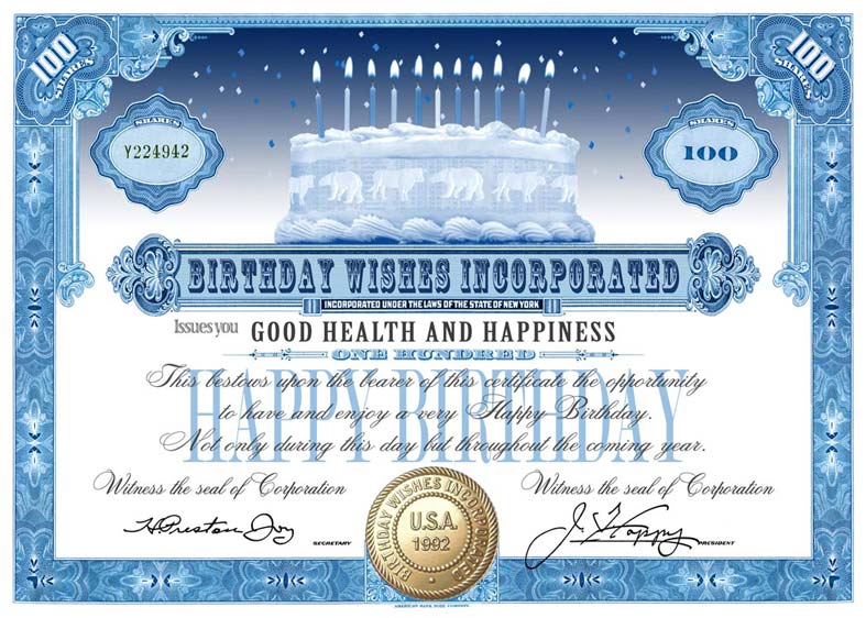 Stock Certificate Happy Birthday Cards - #VAB3265