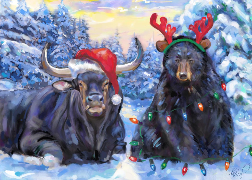 Send holiday greetings to your valued clients with the high-quality Festive Bear & Bull Card. Unique touches include rich, colorful imagery. Choose from three high-quality paper stocks: Signature White, Premium White or Pearl Shimmer; additional charges may apply.